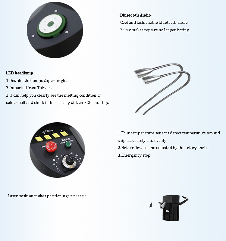 Ipad bga stroj za preradu s dodirnim zaslonom 1. Brzi pregled: Glavne značajke Isporučujemo DH-B2 bga stroj za preradu s boljim performansama. Najveća značajka ovog modela je njegova jedinstvena bluetooth funkcija koja može povezati telefon i druge zabavne uređaje za reprodukciju glazbe. Jamčimo 100 posto QC...
